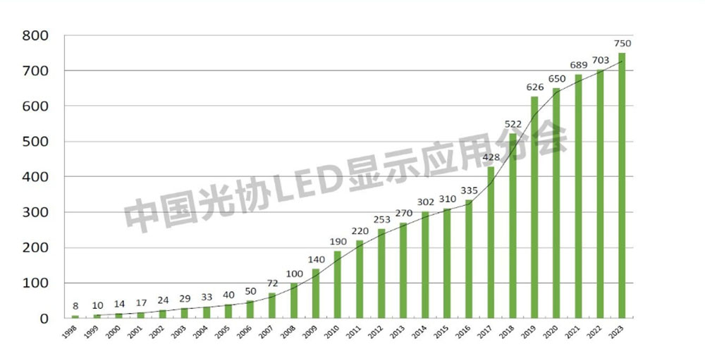 关积珍在报告中指出,我国LED显示屏市场在过去二十多年中呈现出显著的增长趋势。从1998年的8亿元市场规模,到2023年的750亿元,市场规模增长了近94倍。尤其是2016年以来,市场规模从2016年的335亿元增长到2023年的750亿元,年均复合增长率保持在较高水平,显示出强劲的增长势头。这一增长趋势不仅反映了我国LED显示应用行业的强劲发展势头,也体现了我国消费者对高品质显示产品的需求日益增加。关积珍分析认为,未来,我国LED显示应用行业将继续保持快速增长的势头。一方面,随着城市化进程的加速和消费升级的推动,户外广告和商业租赁领域对LED显示屏的需求将继续增加;另一方面,随着智能家居、智慧城市等新兴领域的快速发展,LED显示应用行业也将迎来更多的发展机遇。
